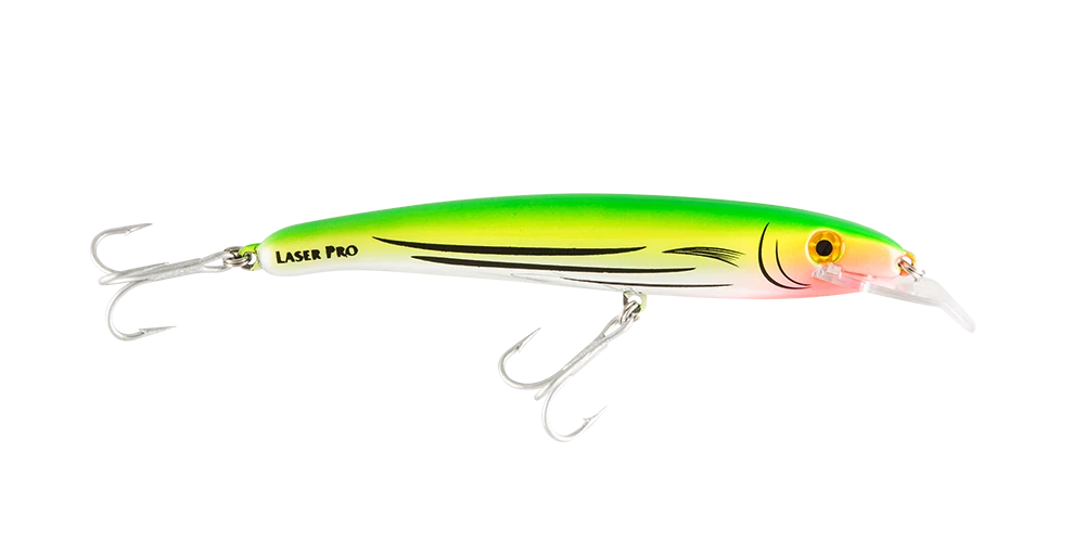A great bluewater trolling lure, the Laser Pro 160 can be trolled over a wide speed band, however its optimum speed for trolling for pelagics is around 6.5 knots. Troll lures at distances ranging from 10-50 metres from the boat. About 25 metres is normal. Troll more than one lure at once to increase your chances, and emulate a school of fish. When trolling for toothy pelagics, such as mackerel, remember to use a Halco Snap or Supa Snap Trace.