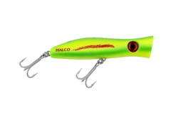 The Halco Roosta Popper 105 Lure is a surface popper and blooper. Catch big salt water fish with this surface popping lure as it splashes about attracting nearby fish. By changing the height of your rod tip, you are able to change how the lure responds and swims underwater – a rod tip closer to the water surface produces a stronger bubble action and is ideal in rough conditions or strong winds. The Roosta Popper 105 is designed to target salt water predators such as mackerel, trevally and many more.