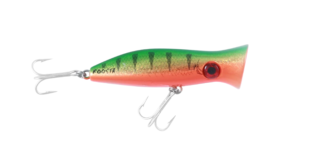 The Roosta Popper 80 is an excellent choice for anglers targeting a range of saltwater and freshwater predators. The Roosta Popper 80 withstands Australia’s toughest fishing environments, and prides itself on being a highly durable surface action lure. Boasting strong #3 Mustad 3XX trebles, your conversion rate will dramatically increase, helping you to land more fish, time after time.