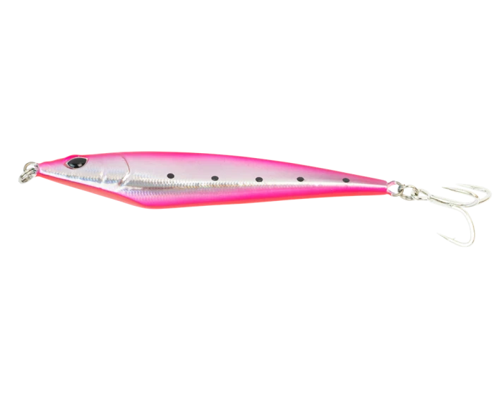 The unique angled head design creates an erratic sideways darting movement with each wind of the reel. The weighted belly shape makes easy distance casting from shore or on a boat – ensuring you can get to where the fish are feeding! Fitted with Ultimate BKK Hooks to be fished straight out of the packet.