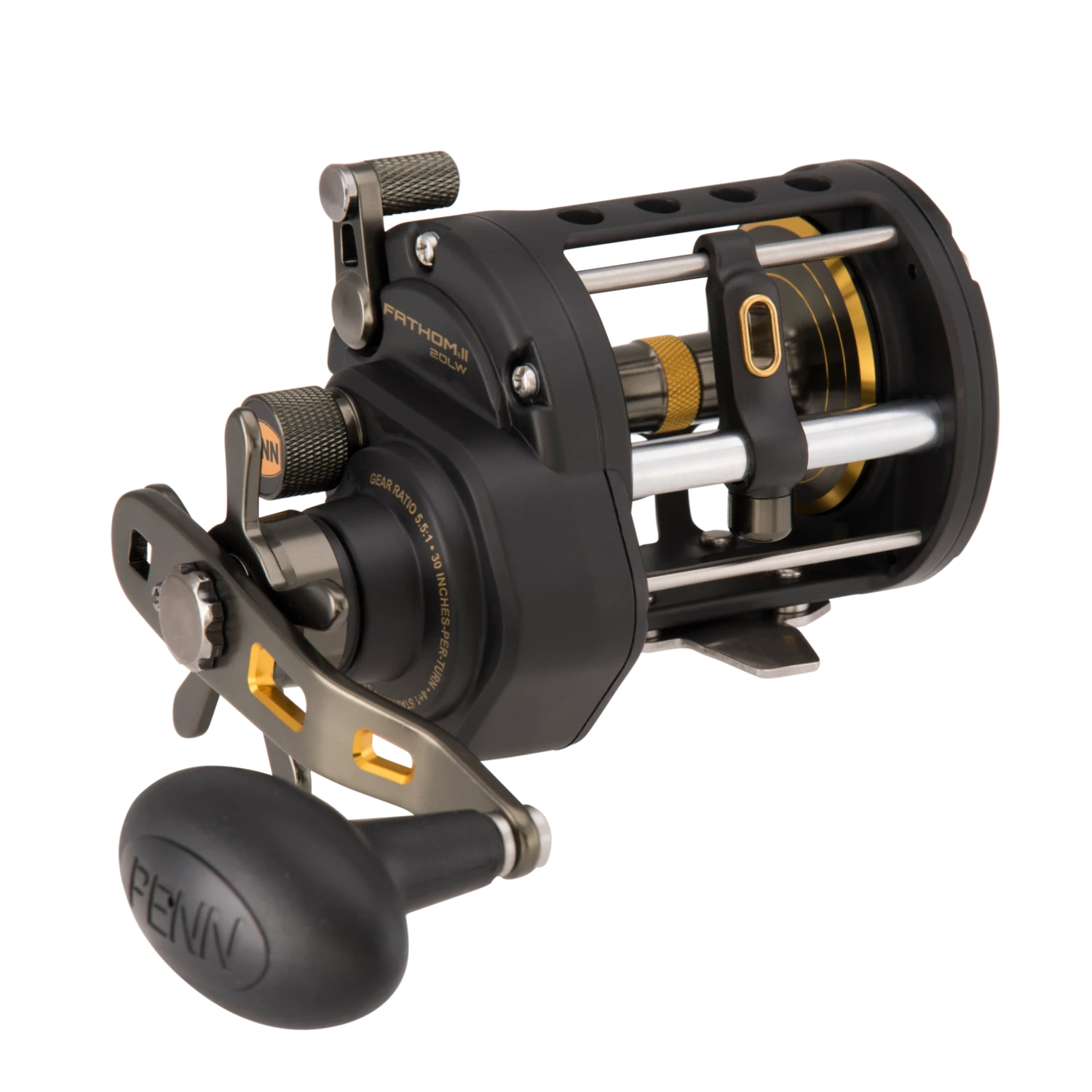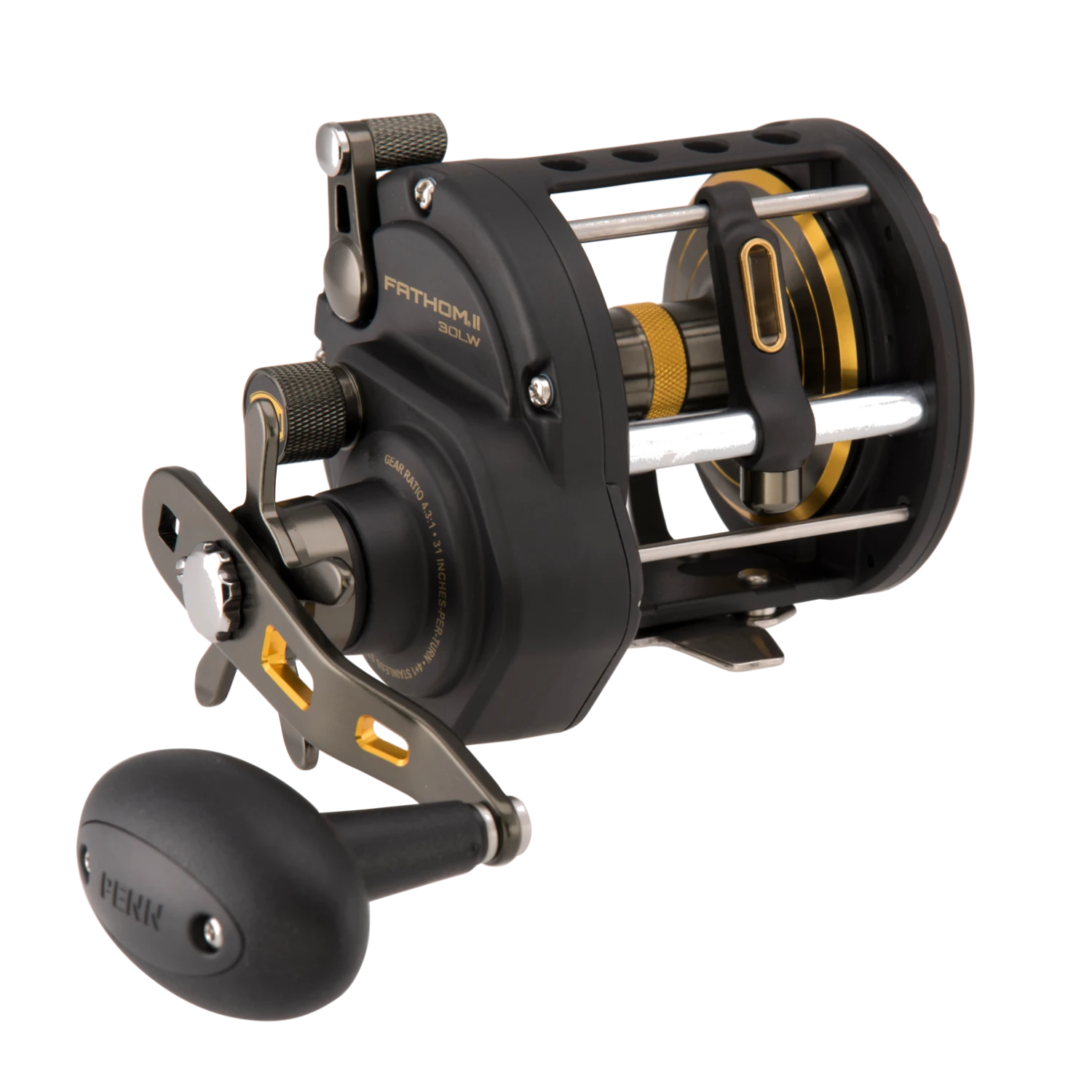 The PENN Fathom II Level Wind’s heavy duty construction and powerful gears make it a true workhorse and favorite of charter boat Captains. It is designed to handle extreme abuse day-in and day-out. Whether you are bottom-fishing or casting live bait, the Fathom II will stand up to the hardest fishing conditions. A Full Metal Body keeps precise gear alignment while the Fast Gear Access Sideplate allows for easy maintenance. The Fathom II also houses our powerful HT-100 drag system to stop any fish that bites. Available in standard, line counter and left hand models