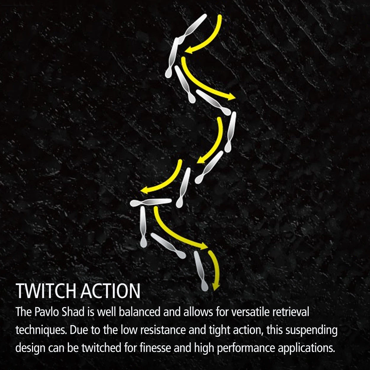 The Bantam Pavlo Shad is a superior deep diving Japanese designed suspending minnow. Available in 52mm and 59mm and finesse weights of 4g & 6g respectively, the Pavlo Shad is available in 6 exciting colours. What makes the Pavlo Shad truly impressive is the 1.2m and 1.7m suspending depths, making this the perfect lure to target Bream, Bass, and other fish holding deep. With angled internal chambers that are loaded with two large bearings designed to produce a deep sonic rattle to alert predators to its presence teamed with a tight shimmy and consistent action. This is not only a deadly lure but also easy to work.