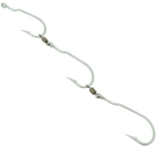 Sold already linked in 3 gangs (3 hooks linked together), the hooks are joined with quality rolling swivels. This makes baiting a breeze and ensures a huge lift in hook-ups and landed fish. The hooks are cone cut Permasteel  711 hooks and the unique design ensures that the pointy end will always turn toward the source of pressure, I.E. the mouth. They are incredibly sharp, providing reliable penetration and strong enough to handle teeth, rocks and the fighting power of a monster. Tru Turn Gang Hooks for sale now are sold in packs of 5 sets of rigged gangs, and will change your approach to rigging with gangs.